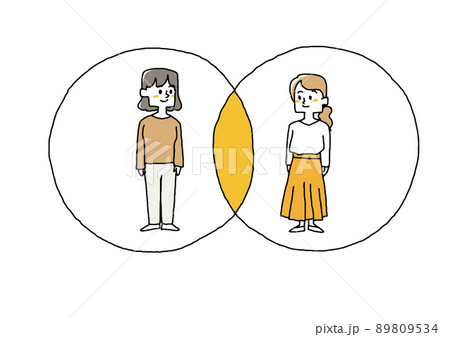他人との共通点や妥協点を見つけた女性 コミカルな手書きの人物 ベクター、温かみのある線画