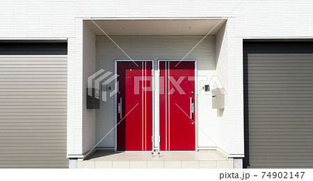 隣りあう赤いドア/真っ赤なドア/白い家と赤いドア