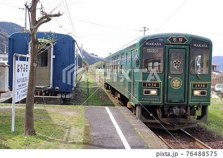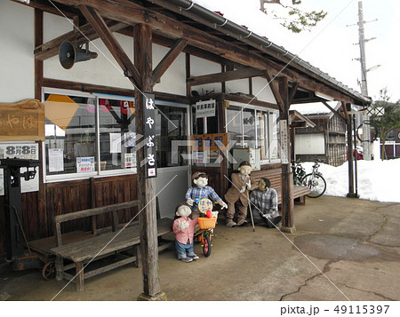 日本遺産に指定された鳥取県八頭町の若桜鉄道隼駅の駅舎とプラットホーム