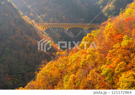 埼玉県秩父市大滝 雁坂大橋からの豆焼橋の紅葉の景色