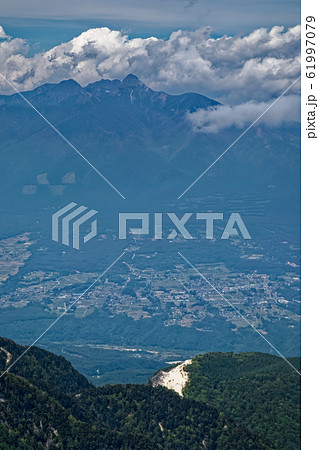 甲斐駒ヶ岳・黒戸尾根から見る黒戸山と北杜市の町並み