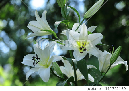 林縁に咲くヤマユリとつぼみ 福島県只見町
