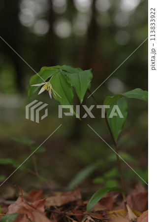 自然 植物 チゴユリ、春から初夏にかけて、雑木林の中で足首ほどの高さにきれいな白い花を咲かせます