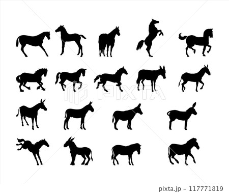 A set of high-quality detailed horse silhouettes