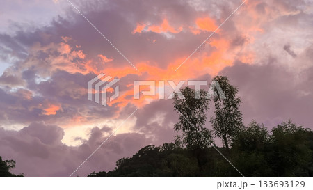 Wulai Taiwan Dawn Sky Colorful Pink Purple Clouds Tree Silhouette.