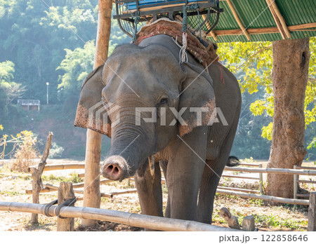 Asian elephant (Elephas maximus) living in wildlife conservation area in Chiang Rai province of Thailand.