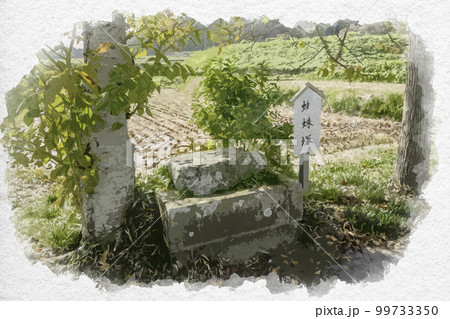 水彩画風 一言主神社 蜘蛛塚 奈良県御所市