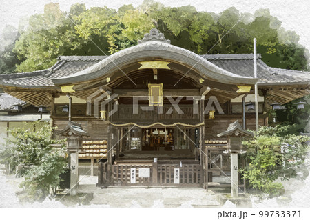 水彩画風 一言主神社 拝殿 奈良県御所市