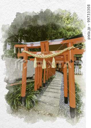 水彩画風 一言主神社 一言稲荷神社 奈良県御所市