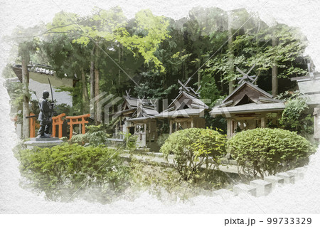 水彩画風 一言主神社 摂末社 奈良県御所市