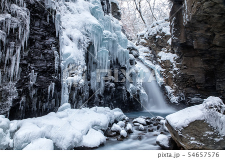 半分凍結した雄飛の滝
