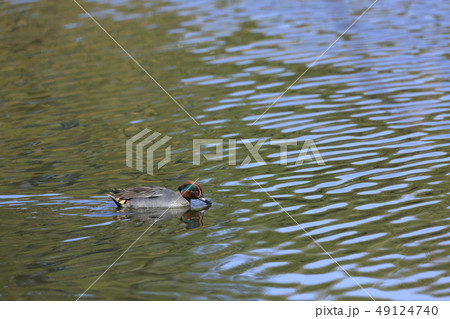 冬鳥の渡り鳥キンクロハジロの雄鴨が水辺に浮かんで波紋を作る