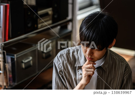 自宅で仕事するかっこいい男性