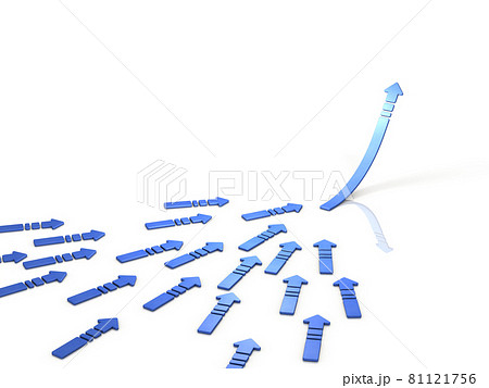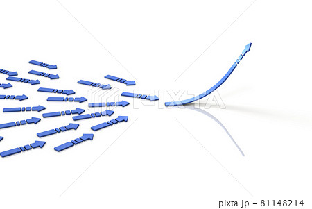 集まり集結する沢山の矢印は物事の集大成を表す。白バック。3Dレンダリング。
