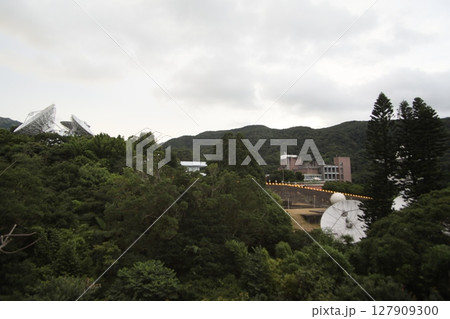 Odawara city in Kanagawa, Japan, Residential neighborhood with houses and greenery near mountains under cloudy sky