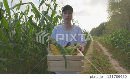 Harvesting Fresh Corn on a Beautiful, Sunny Day in the Field with Family and Community
