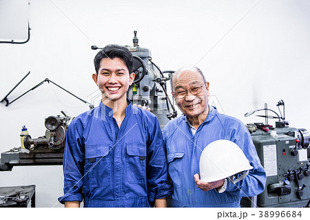 2人の作業服の男性のイラスト、若い男性と中年、ベクター