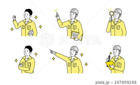 いろいろなポーズの若い作業服の男性イラストセット、ベクター