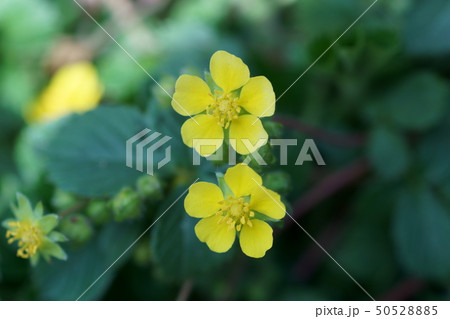 自然 植物 キジムシロ、初夏に咲くヘビイチゴに似た花。鮮やかな黄色が美しい