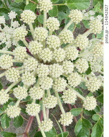 寒くなると雄花が雌花に変わるヤツデ(八つ手)