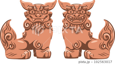 沖縄県の魔除けシーサーと石敢當のイメージイラスト