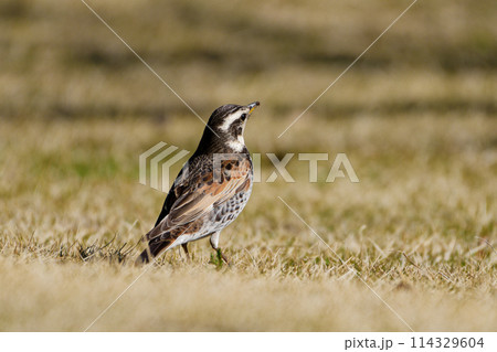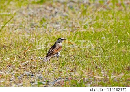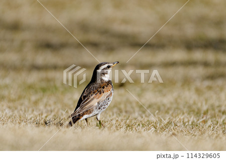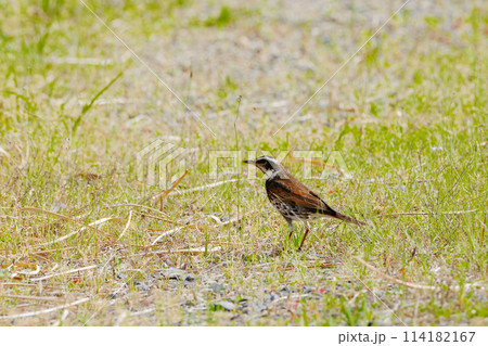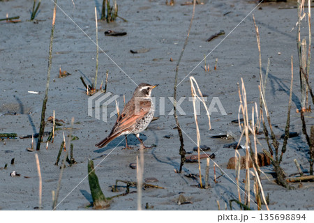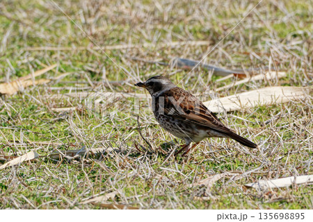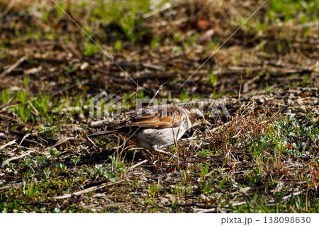 藤前干潟の野鳥 冬鳥ヒタキ科ツグミの採餌