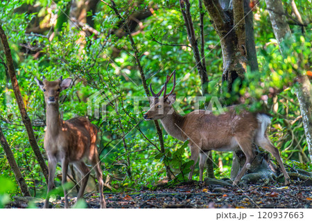 ヤクシカ 警戒 世界自然遺産屋久島(夏