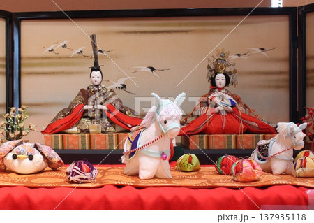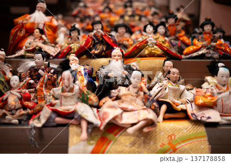 ひな祭りで雛壇に飾られる古いお内裏様とお雛様