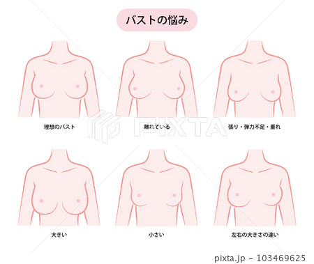 女性のバストの悩みのイラスト(サイズ・かたち)