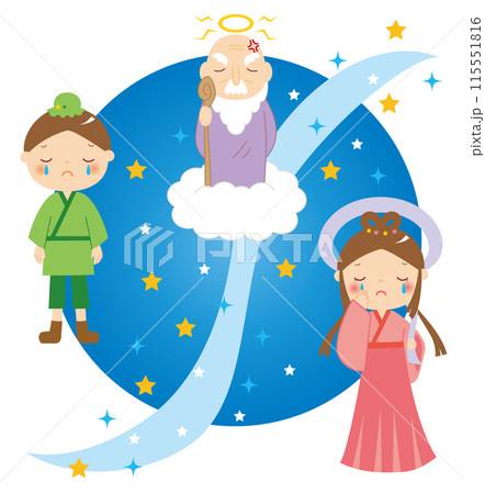 神様に怒られて、離ればなれになって悲しむ織姫と彦星