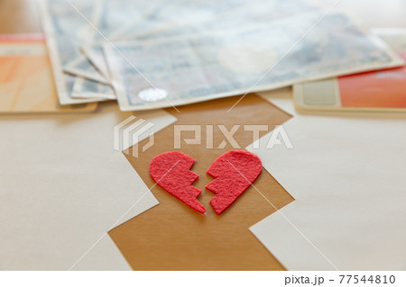 離婚届とお金 子供の親権や養育費のイメージ素材