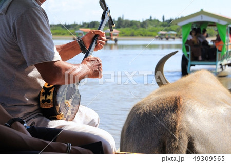 西表島から由布島へ向かう水牛車 三線を聴かせてくれている方