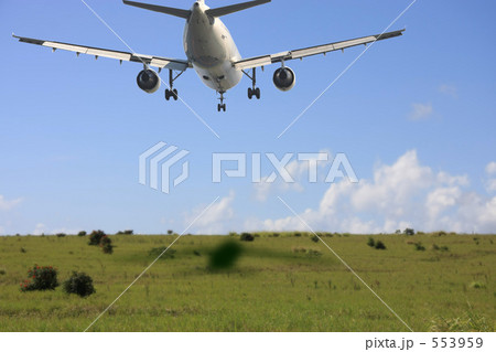 着陸 離陸 ジェット機 旅客機 着陸態勢 青空 草原 ランディング