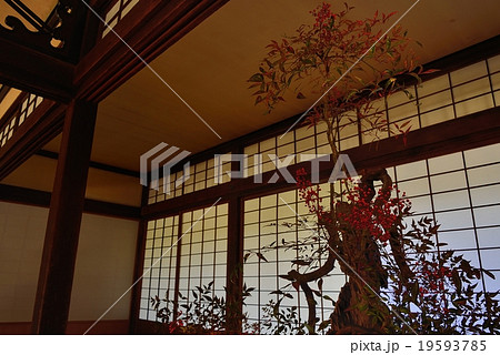 南天と木枠の趣き