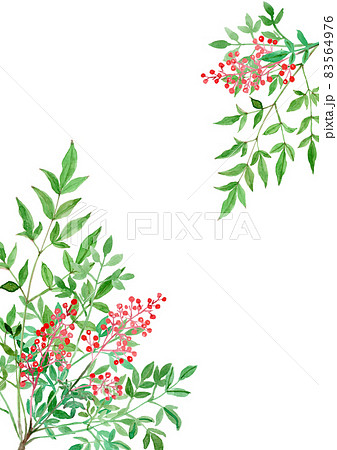 南天のリアルな水彩イラスト