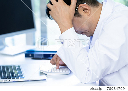 パソコンを見て悩む医師