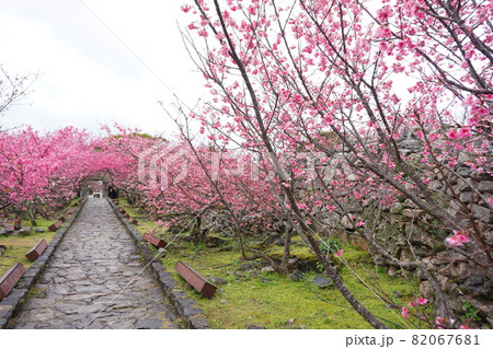 ピンク色が鮮やかな今帰仁城跡の桜