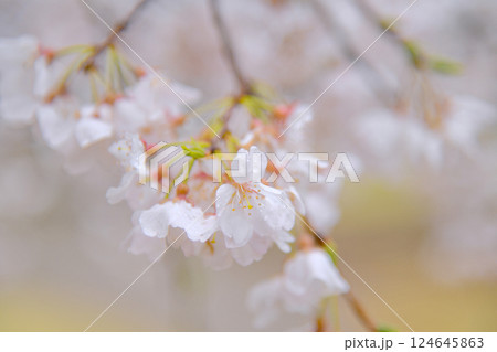雨に濡れるウコン桜の花