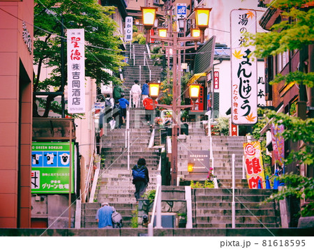 雨上りの伊香保温泉 石段街の風景