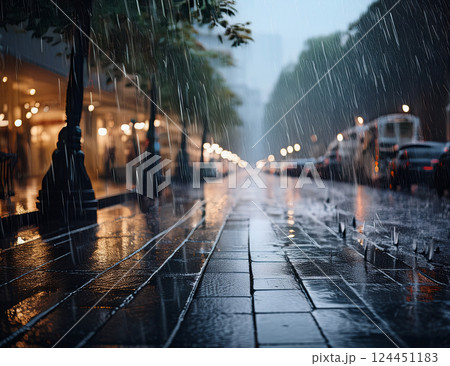 雨の日の街と道路と交通 AI生成画像 Rainy day urban traffic road