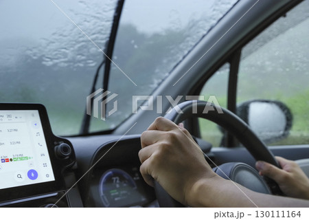 大雨の日に運転をするドライバー