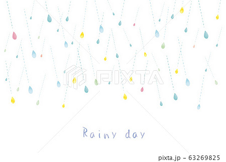 雨:かわいい 雫 雨粒 粒 雨天 梅雨 6月 7月 天気 小雨 水彩 しずく 水 フレーム 枠