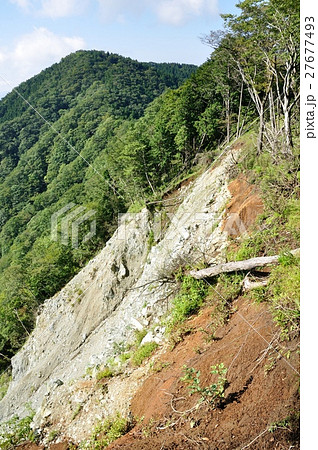 丹沢の世附権現山からの展望 崩落した山肌に西丹沢と表丹沢のコラボ