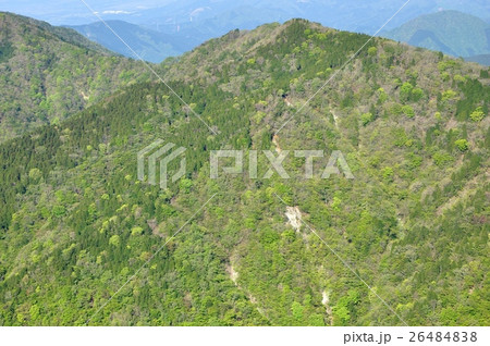 丹沢山地の不動ノ峰から望む 緑の山地 鍋割山稜と檜岳山稜