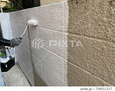 左官→マスチック肌合わせ→下塗り→中塗り作業(縦写真)