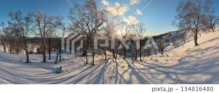 藻琴峠の夕日と雨氷の木