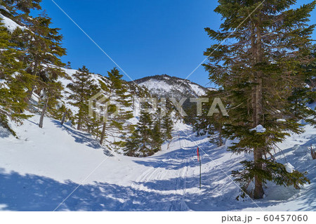 長野県の北八ヶ岳、冬の坪庭と雨池山