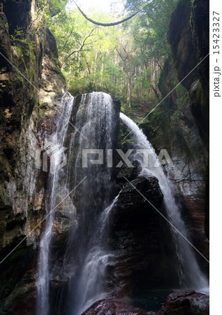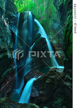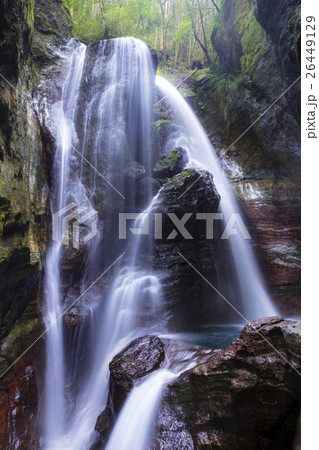 涼しそうな滝が流れている美しい渓谷の風景(中津渓谷 雨竜の滝)