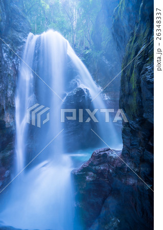 洞窟から見上げる豪快な雨竜の滝の情景@中津渓谷、高知