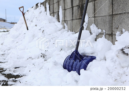 除雪用具 コンクリート壁に立てかけている角スコップと手袋